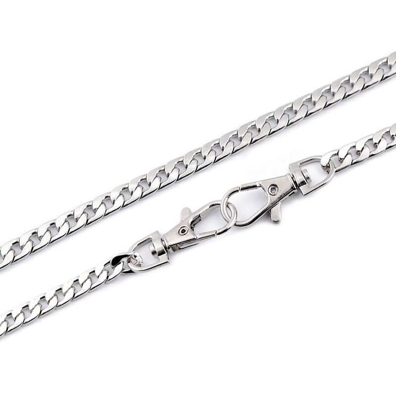 Flat metal chain for handbags with fastening system. Made of durable material with an attractive look.Mesh width: 6mm Chain length: 120cmWeight: 84gPrice refers to one piece
