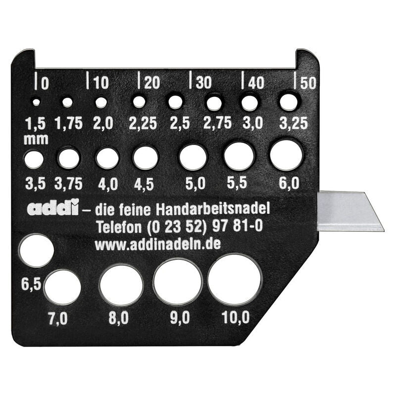 The plastic plate is used to determine the size of the knitting needle by test: if the crochet hook or knitting needle goes into the hole and there is no space between the gauge and the needle, the needle is the size of the number written next to the hole. The plate has 20 places between 1.5 and 10mm. In addition to these, there is a 50mm scale and a small cutter attached to this measuring tool.Size: 6x6cmMaterial:plastic