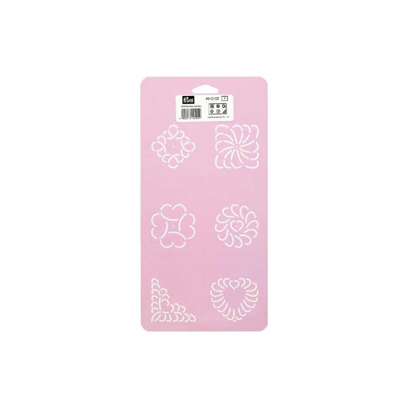 A pattern template used for drawing patterns for quilting. The pattern on the template is traced with a marker or pencil and machine quilted.