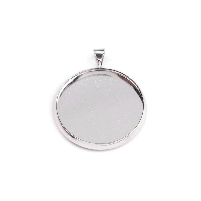Bază pandantiv rotund. Diametru exterior: 27mm, Diametru interior: 25mm, Grosime: 1,5 mm. Diametru ureche: 4mm. Material: metal. Prețul se referă la o bucată.