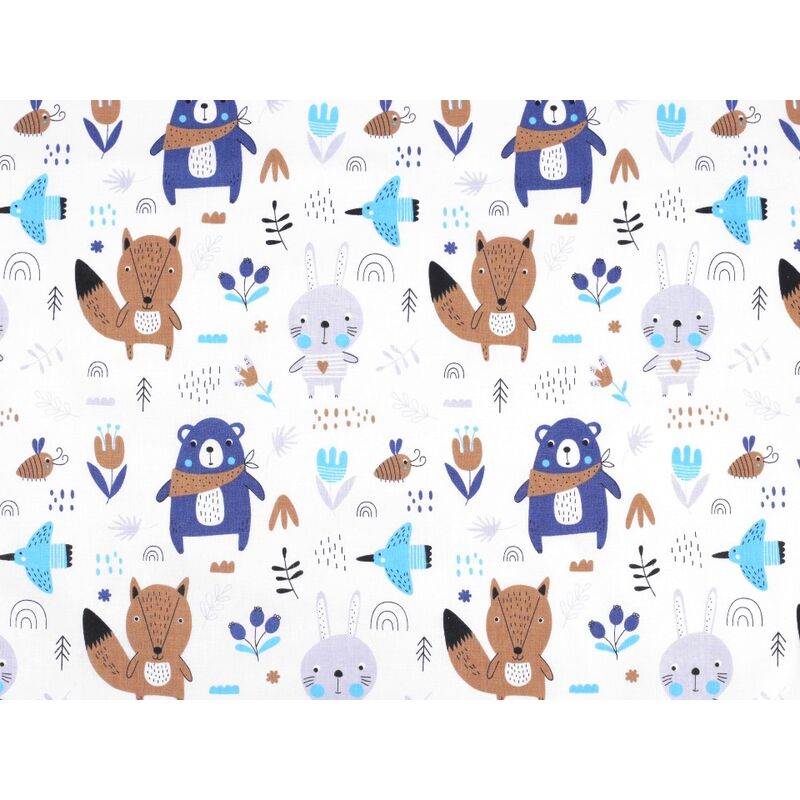 Material bumbac, animăluțe, albastru-maro, 160cm, 0.5m/buc