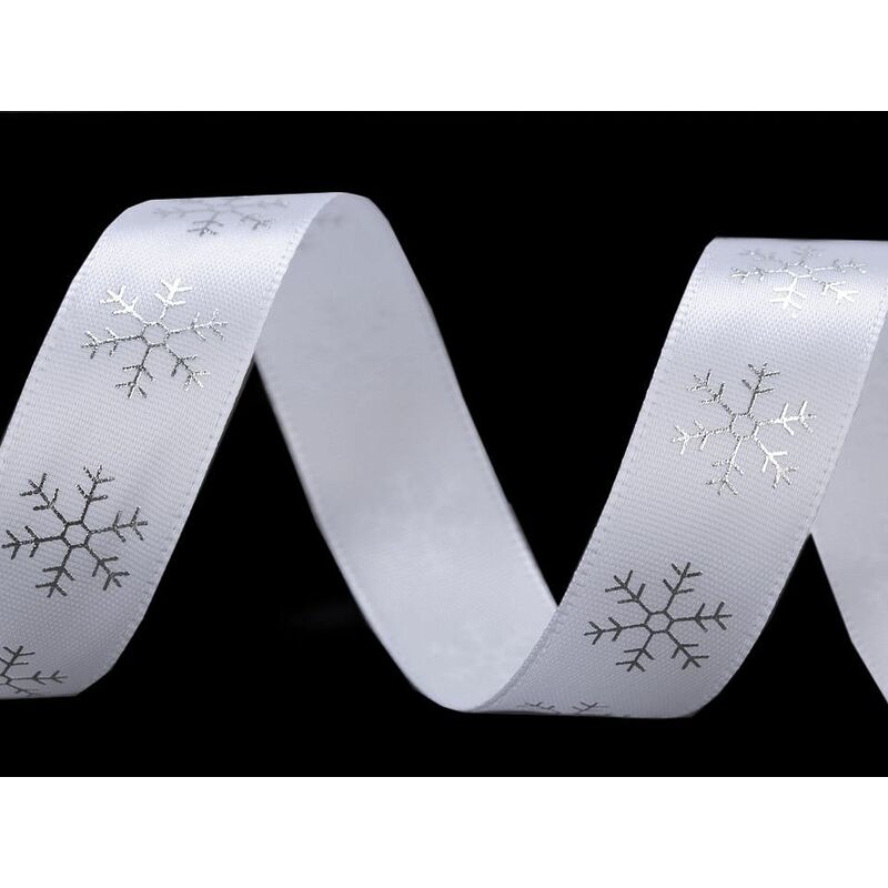 Panglică satinată, fulgi de zăpadă, 20mm, 5m/buc