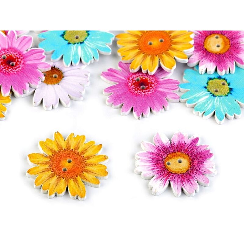 Nasture din lemn, floare, cu două găuri. Diagonală: 35mm, Grosime: 2.3mm, Material:lemn. Prețul se referă la 5buc.